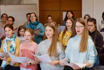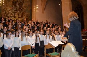 Als sich der aus Eltern, Lehrern und Schülern bestehende Projektchor unter der Leitung von Miriam Sauter formierte, strebte der Konzertabend seinem Höhepunkt zu.
